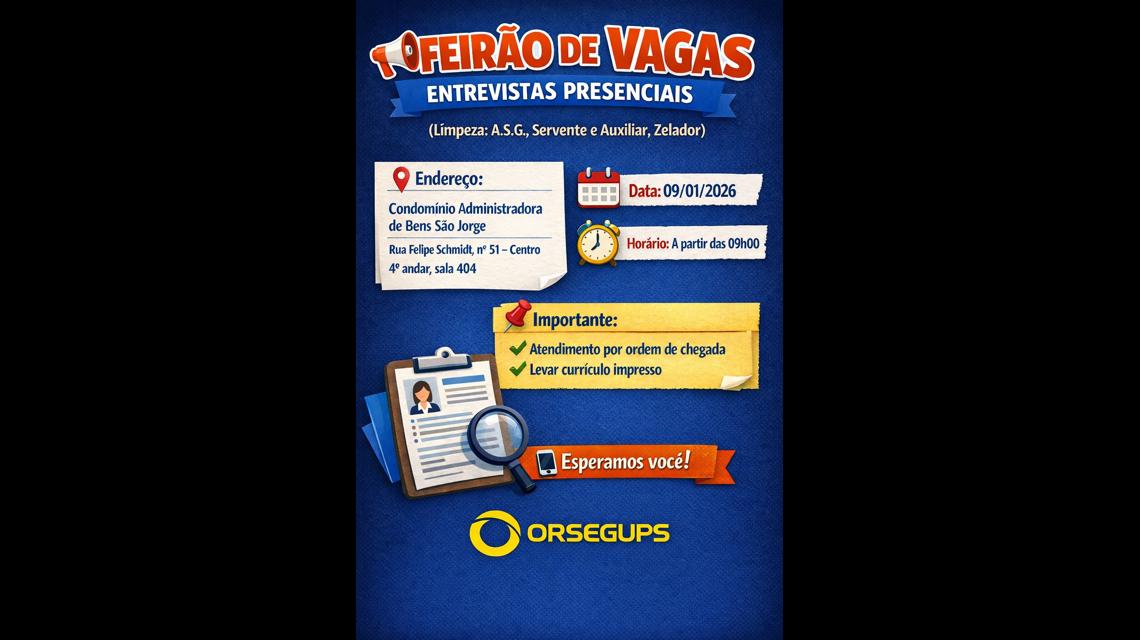 FEIRÃO PARA AREA DA LIMPEZA 09/01/2026 às 09H00 - -FLORIANOPOLIS